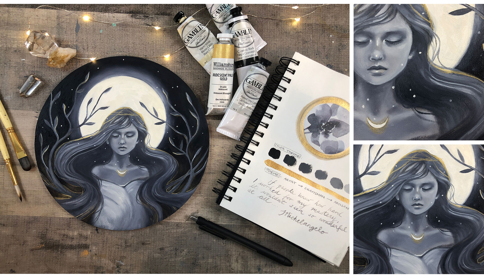 Welcome to this month's art project! I had so much fun reflecting on our circle prompts and connecting this to the beautiful moon. I hope you enjoy creating your own "Girl in the Moon." As always, please feel free to interpret this lesson so that it resonates with your own stye and creative process.. Let's begin.