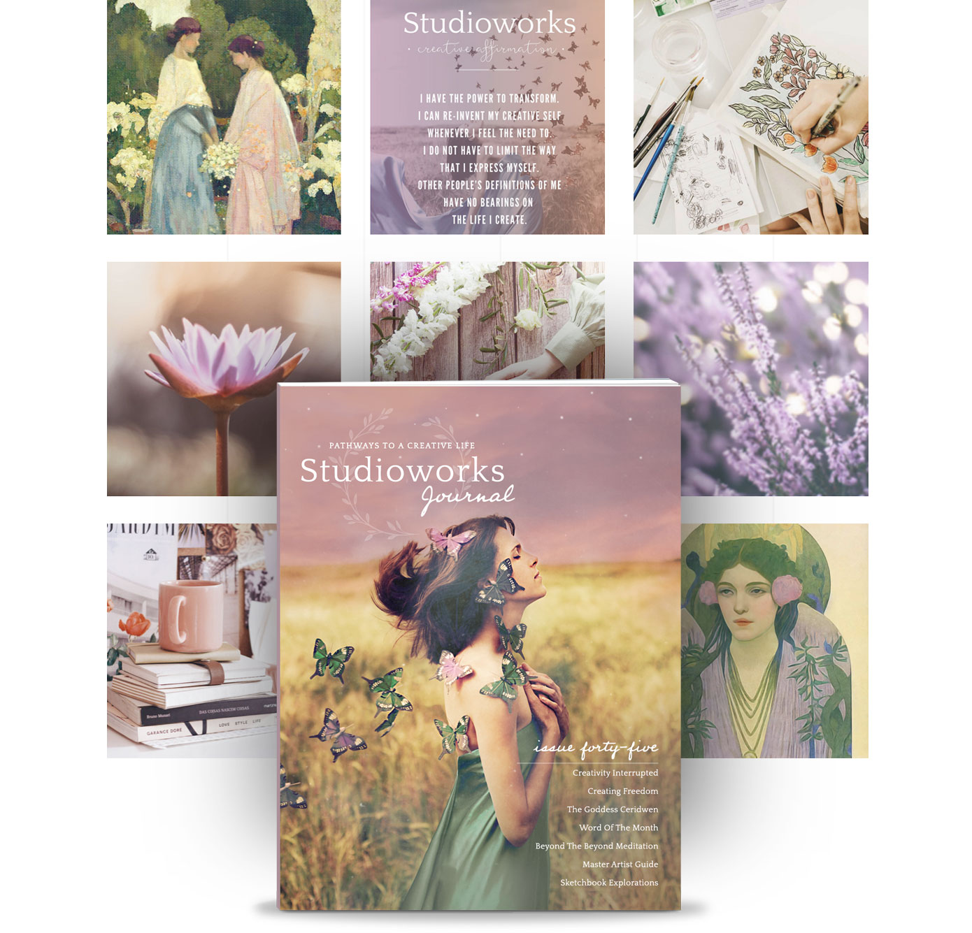 Plus, each and every month you will be supported in your creative journey through teachings we’ll be sharing with you in the Studioworks Journal. This specially crafted online magazine will be packed with inspiration, guidance, creative prompts and sketchbook explorations.